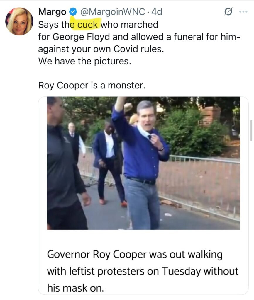 Driving much of the fury in North Carolina is Margo, a former NC District GOP Secretary with more than 70,000 Twitter followers. Known for blending sharp insults with political rhetoric, Margo has used Kirk’s death to galvanize her audience.